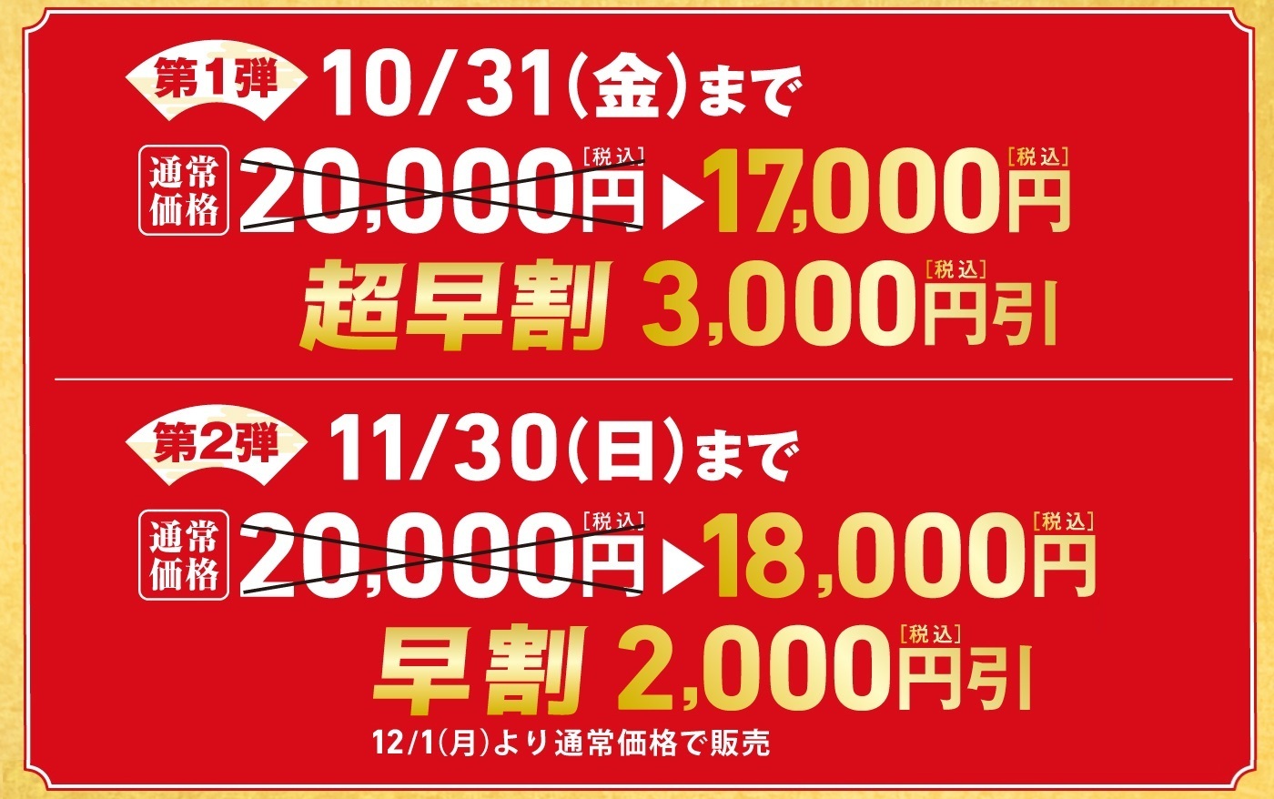 くら寿司ネット通販「無添加工房」くら寿司おせち 【秋の大感謝祭】【ポイント7倍】【早割11/30まで2,000円引】【セット価格 3,000円お得】【予約】2026 くら寿司特製 和風三段重+長崎和牛ローストビーフセット 食事券2,000円分 3人前 41品 (冷凍で12/30お届け、時間指定不可) 通常価格: ¥22,500(税込) 価格: ¥20,500 (税込) 8%OFF [ポイント還元 1,435ポイント~] 販売期間: 2025年10月01日00時00分~2025年11月30日23時59分 数量: セット 在庫 ○ 返品についての詳細はこちら レビューはありません 【秋の大感謝祭】【ポイント7倍】【早割11/30まで2,000円引】【セット価格 3,000円お得】【予約】2026 くら寿司特製 和風三段重+長崎和牛ローストビーフセット 食事券2,000円分 3人前 41品 (冷凍で12/30お届け、時間指定不可) 通常価格: ¥22,500(税込) 価格: ¥20,500 (税込) 8%OFF [ポイント還元 1,435ポイント~] 販売期間: 2025年10月01日00時00分~2025年11月30日23時59分 数量: セット 在庫 ○ 返品についての詳細はこちら レビューはありません