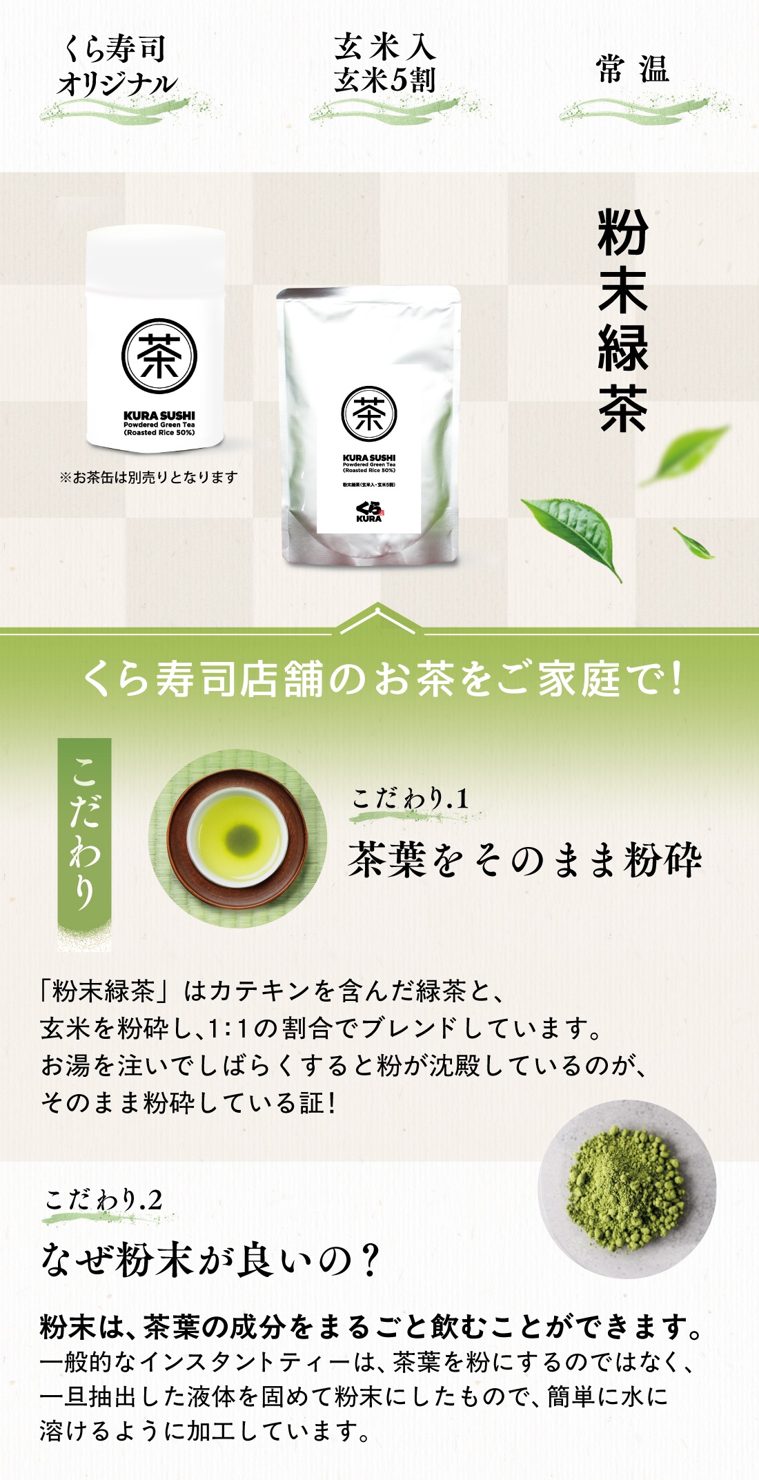 【春の土用丑SALE】【10袋セット 20%OFF】くら寿司特製 粉末緑茶〈玄米入・玄米5割〉(詰替用5袋/詰替用10袋)